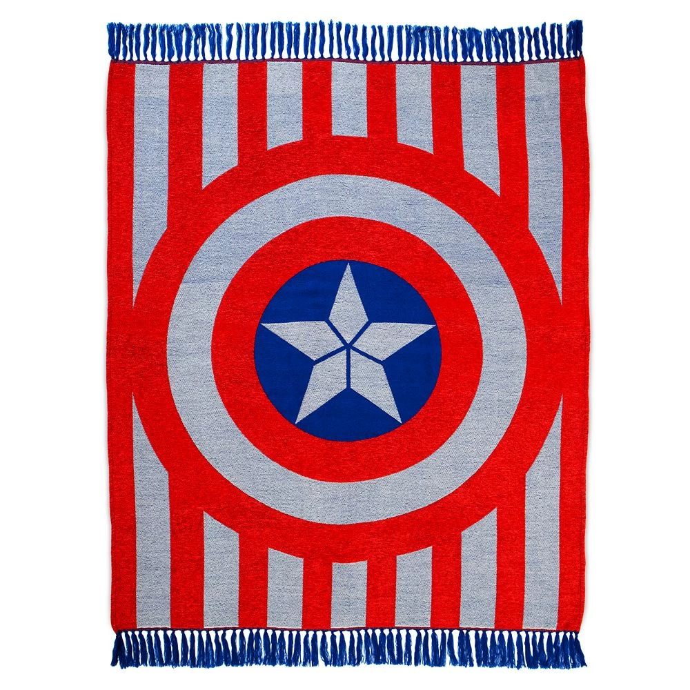 Ideal for snuggling under when taking a power nap, this warm and cozy Captain America throw features the Avenger’s iconic shield plus bold red stripes and blue tassels. Wrap yourself in the super soft Marvel blanket and you’re sure to say, ”I can do this all day.”