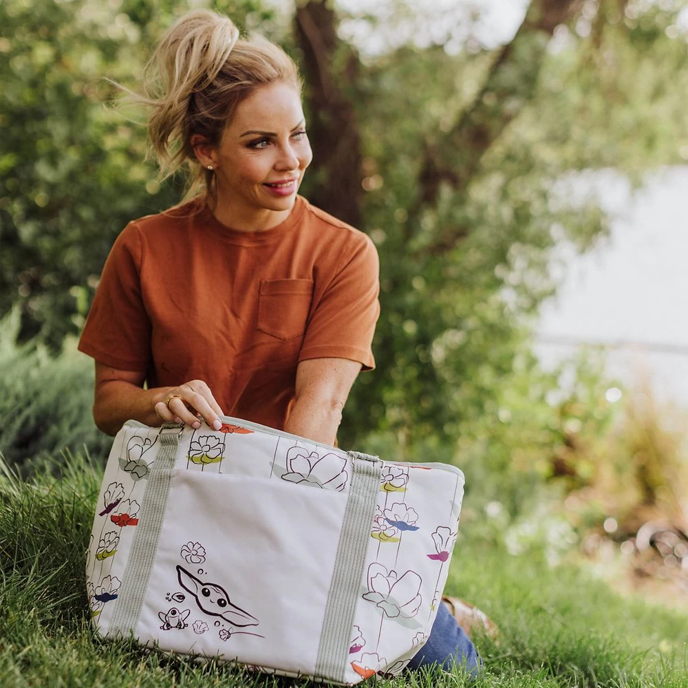 The force is strong with this one. The Child, also known as Grogu, is featured on the front of this stylish and durable cooler tote with an allover floral print. It has a 24 can storage capacity so there’s drinks for everyone in the galaxy.