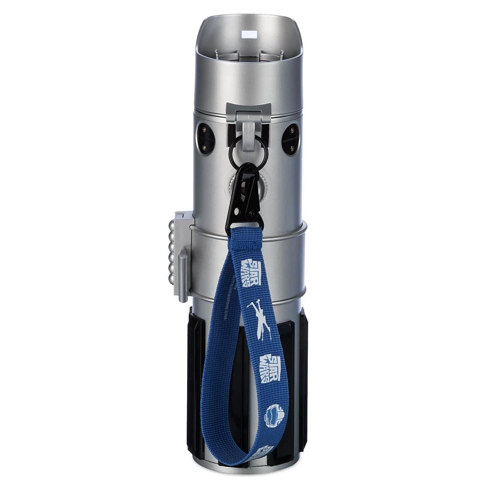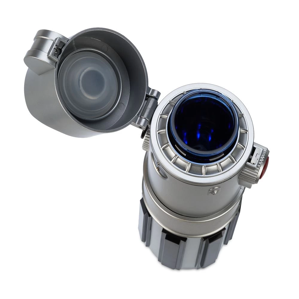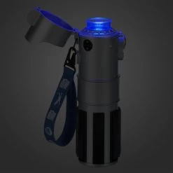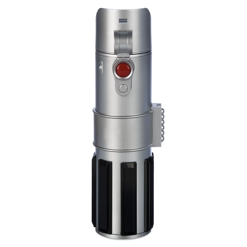Quench your thirst for adventure with this Star Wars water bottle in the form of Anakin Skywalker’s Lightsaber hilt. Press the red button on front to pop open the top as if it were a beam. A translucent blue sipper lip is exposed within, part of a beam-like inner sleeve. Slide the button on the side to hear authentic Lightsaber sound effects and see the inner bottle light up. The Force is with your refreshment!