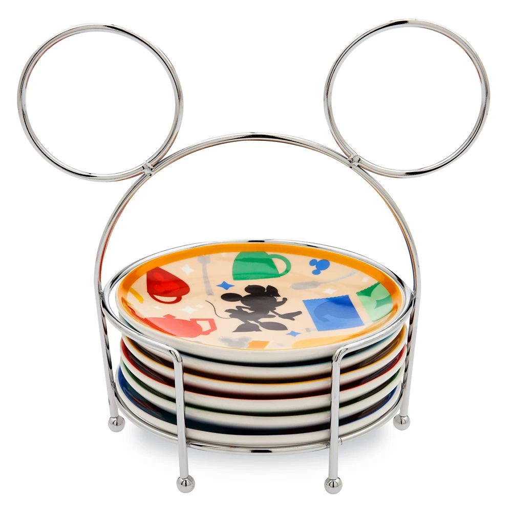 Mickey and his friends will be welcome guests at any party or gathering in the form of this set of tidbit plates and caddy. Minnie, Donald, Goofy and Pluto join Mickey in the colorful designs of the six bone china plates, which come in a decorative Mickey icon metal carry caddy!