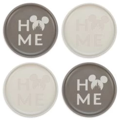 Add an elegant accent to your home with this set of four ceramic coasters from our Mickey Mouse Home Collection. The design cleverly integrates the Disney Parks’ Fantasyland Castle within a Mickey icon which represents the letter ”O” of ”HOME.” A perfect gift for others or yourself, it will add character to any house.