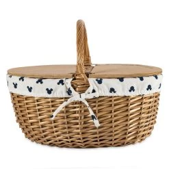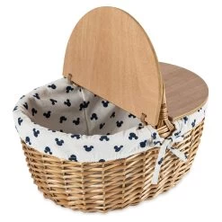This wicker basket is perfect for your next picnic and features fabric lining with a cute Mickey icon pattern. This split-lid, classic country-inspired wicker picnic basket is something right out of a storybook.