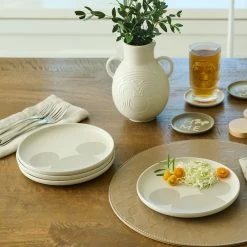 Make any meal feel like a special occasion with this Mickey Mouse salad plate set. Part of the Mickey Mouse Home Collection, this elegant ceramic four-piece set features a large Mickey icon on a satin glaze. A perfect housewarming or hostess gift, or a special treat for your own table, it will add a taste of whimsy to any meal.