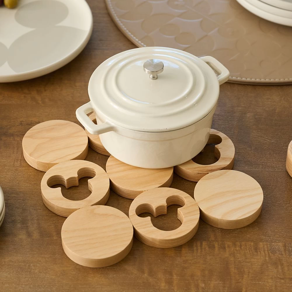 When things get too hot to handle, rest assured this Mickey Mouse trivet can take the heat. Elegantly crafted in ash wood, its nine connected circles include four with Mickey icon cut-outs to bring character and style to your dining table.