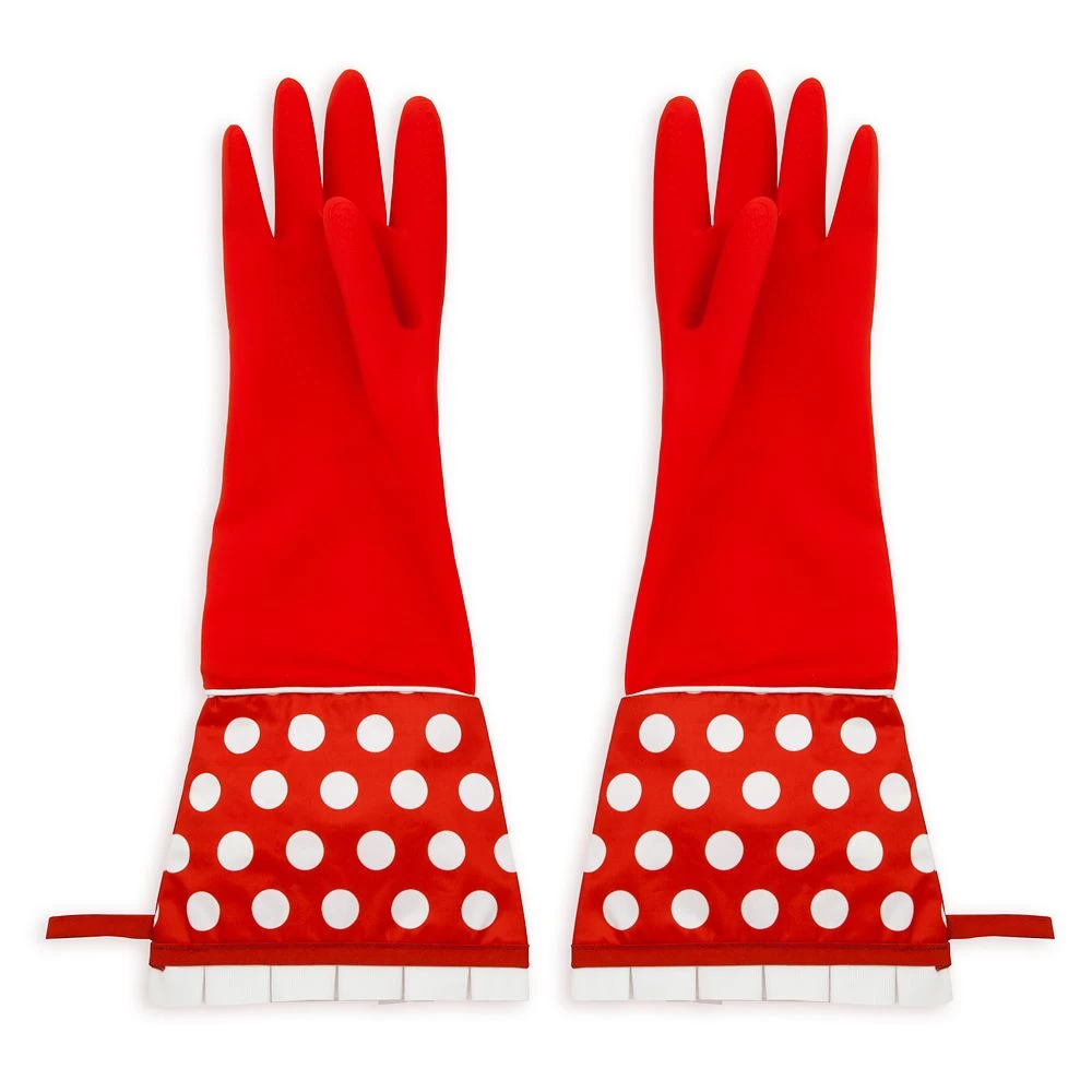 Minnie is on hand to help with the washing up with this fun pair of dish gloves. Taking their inspiration from our leading lady’s identifying polka dot design, these red and white latex rubber gloves feature Minnie’s signature on the vinyl cuff.