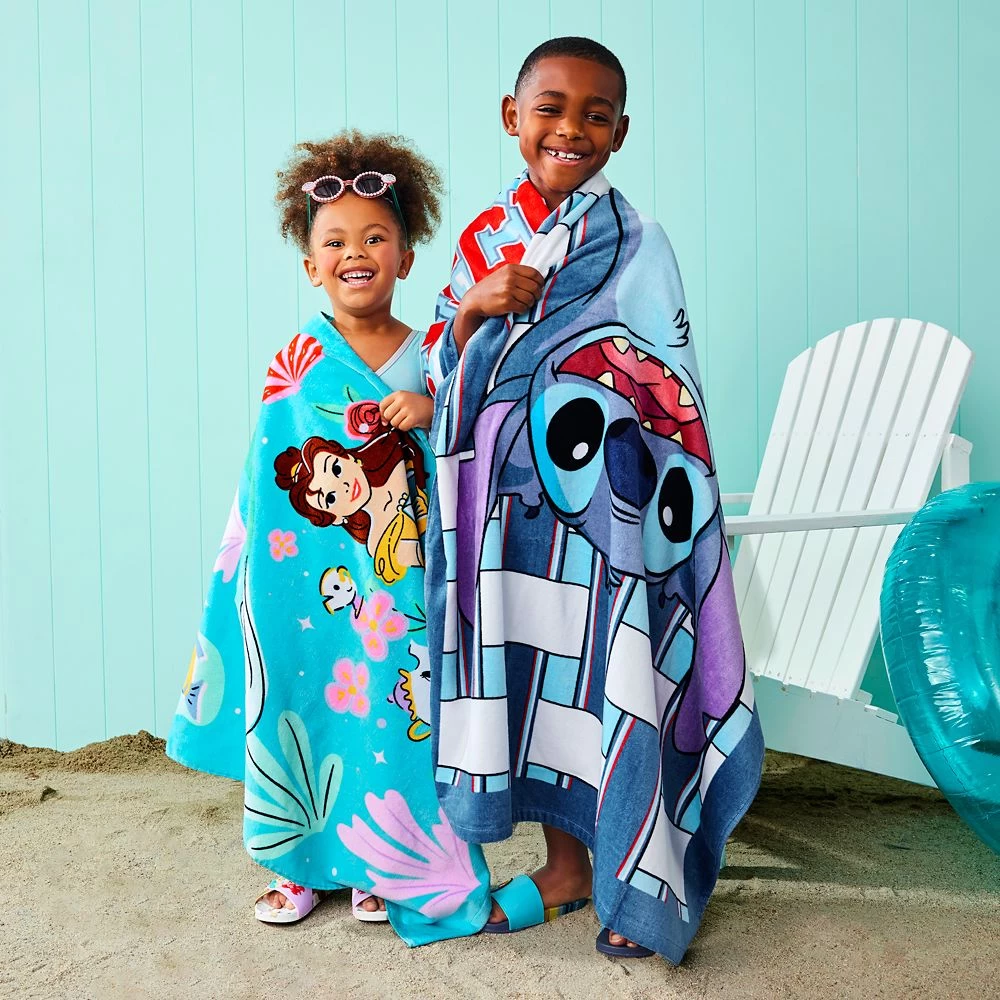 Drift and dream the day away on this all-cotton Disney Princess towel with an undersea theme, our enchanting swimtime accessory for beach or pool.