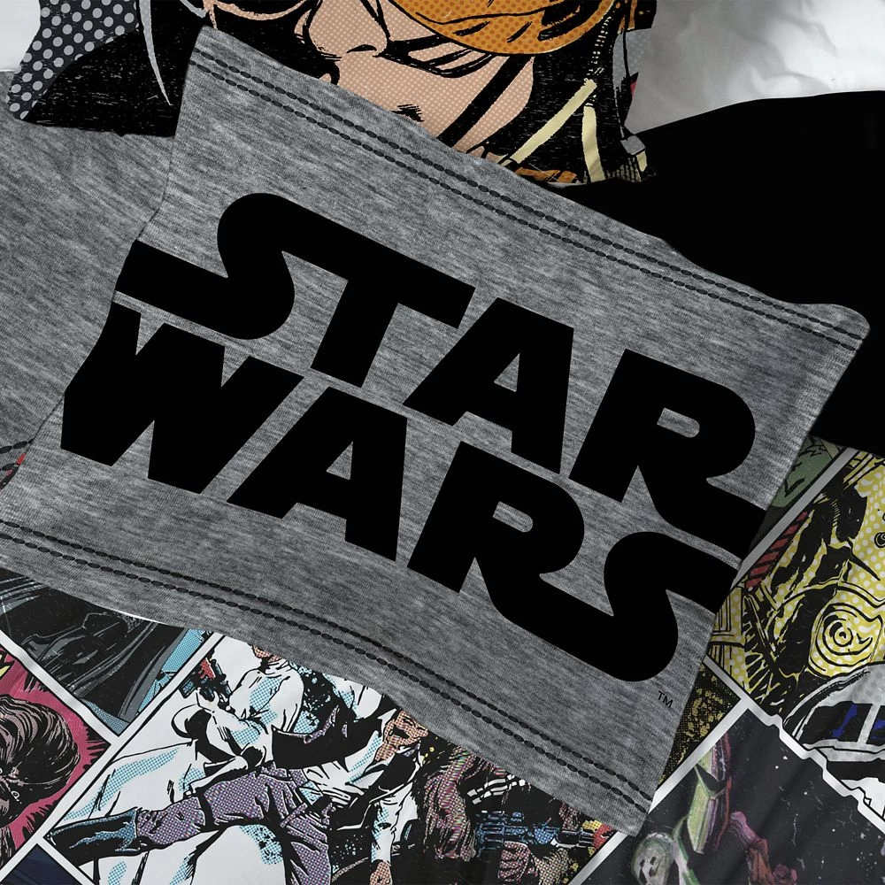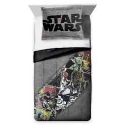 Dreamland will be in a galaxy far, far away when they’re sound asleep in this Star Wars comforter and sham set. The set includes a reversible comforter and sham. Comforter features a solid gray side and comic book-style Star Wars artwork on the other side with Han Solo, Luke Skywalker, Princess Leia, Lando Calrissian, Darth Vader, Boba Fett, Yoda, R2-D2, C-3PO and Chewbacca.