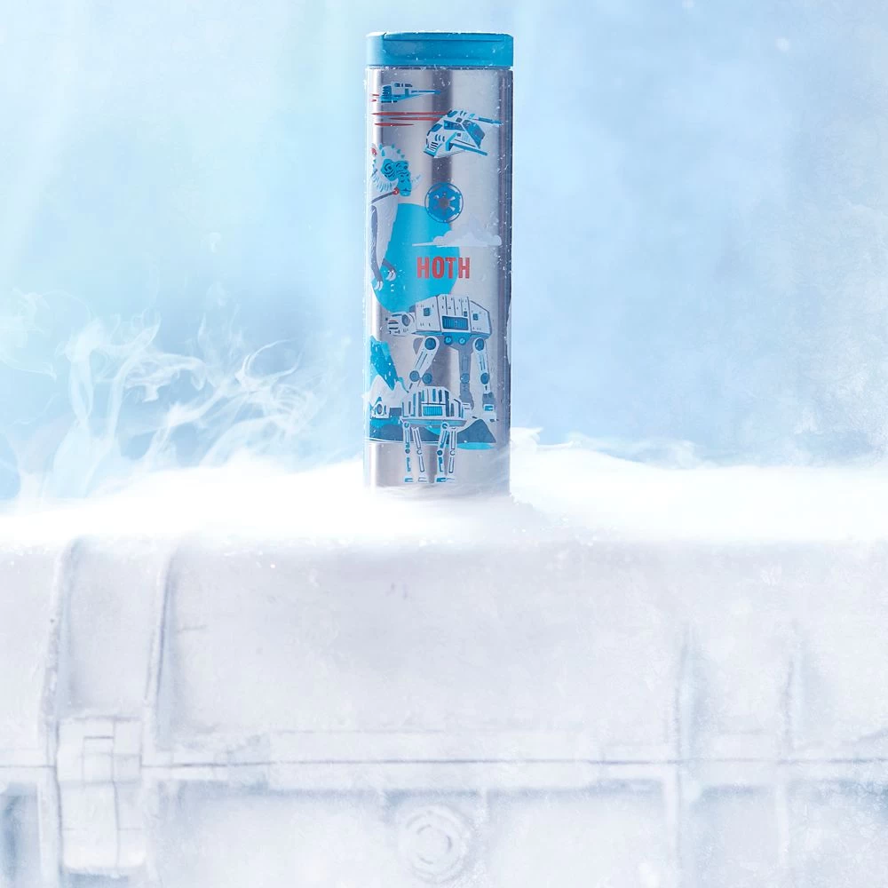 Keep your drink nicely chilled with this Star Wars travel tumbler inspired by the ice planet Hoth. Part of the Starbucks® Discovery Series, Star Wars Collection, the stainless steel double-walled design features allover artwork of Hoth’s snowy mountains and inhabitants including a Tauntaun and Wampa.