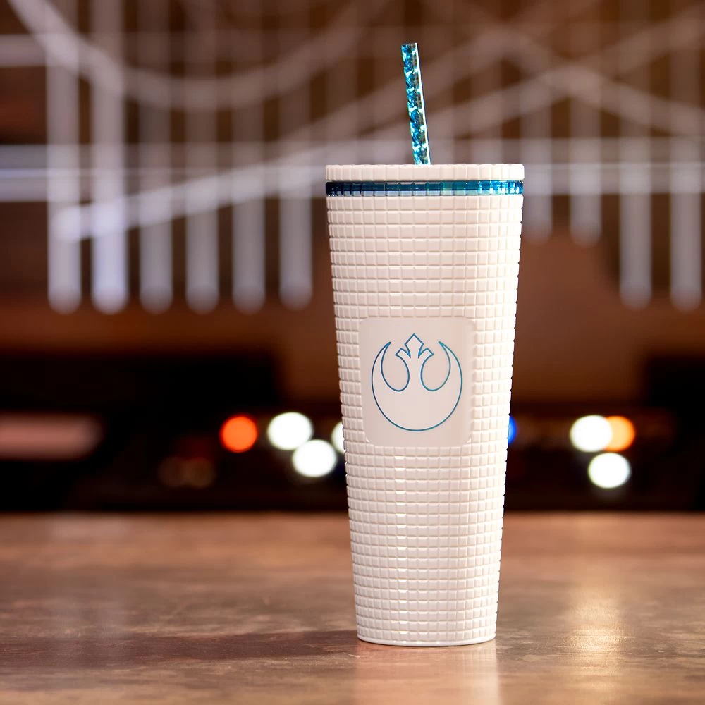 Show your allegiance with this Star Wars tumbler from Starbucks® that’s definitely on the light side. The raised geometric design of this white acrylic drinkware features the Alliance Starbird symbol on one side. Refresh your rebellious nature with every sip from the blue translucent reusable straw!Â