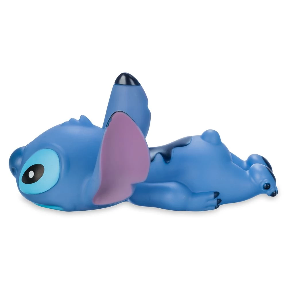 Stitch is all aglow just being near you. With a simple tap, Experiment 626 emits a cool blue and white light that’s perfect to use as a night light or mood lighting to snack by. With another tap the glow turns off but Stitch looks just as cute and chilled as ever.