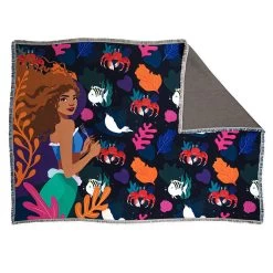 Bring some marine life into your home with this colorful throw inspired by Disney’s live action The Little Mermaid. Ariel is pictured holding a dinglehopper as she is joined by her friends Flounder, Sebastian and Scuttle in the bold allover pattern of this soft throw that will inspire waves of smiles!