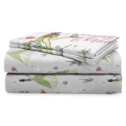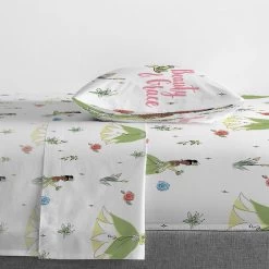 Tiana brings her ”Beauty & Grace” to this fairytale sheet set. Inspired by Disney’s The Princess and the Frog, it’s available in three sizes and features a delightful allover pattern of Tiana with water lilies, roses, and bullrushes.
