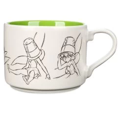 Perturbed pixie Tinker Bell struggles inside a sewing drawer in a series of expressive animation sketches on this ceramic mug inspired by Walt Disney’s Peter Pan. Rewaken your adoration for the art of Disney Animation each morning.