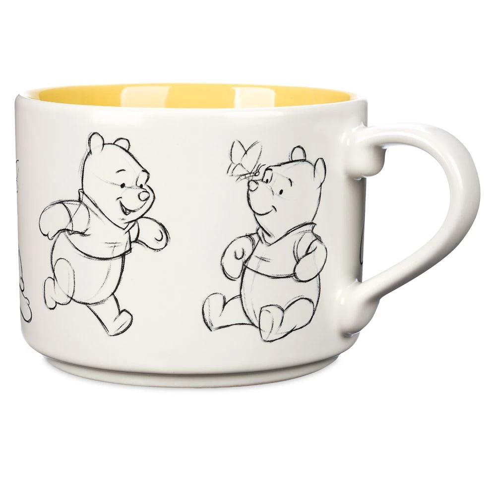 Our silly ol’ bear chases a butterfly in a series of expressive animation sketches on this ceramic mug inspired by Disney’s classic film The Many Adventures of Winnie the Pooh. Rewaken your adoration for the art of Disney Animation each morning.