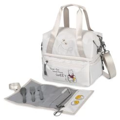 This Winnie the Pooh Insulated Lunch Bag is the perfect personal cooler set, with a shell made from 16 recycled water bottles and an adorable design. This lunch bag features a water-resistant, easy-clean insulated cooler, an expandable upper compartment, and a versatile shoulder strap. It’s a fully equipped personal cooler set with a water-resistant placemat, recycled plant fiber utensils, a reusable metal straw–and, of course, lots of room for tasty treats.