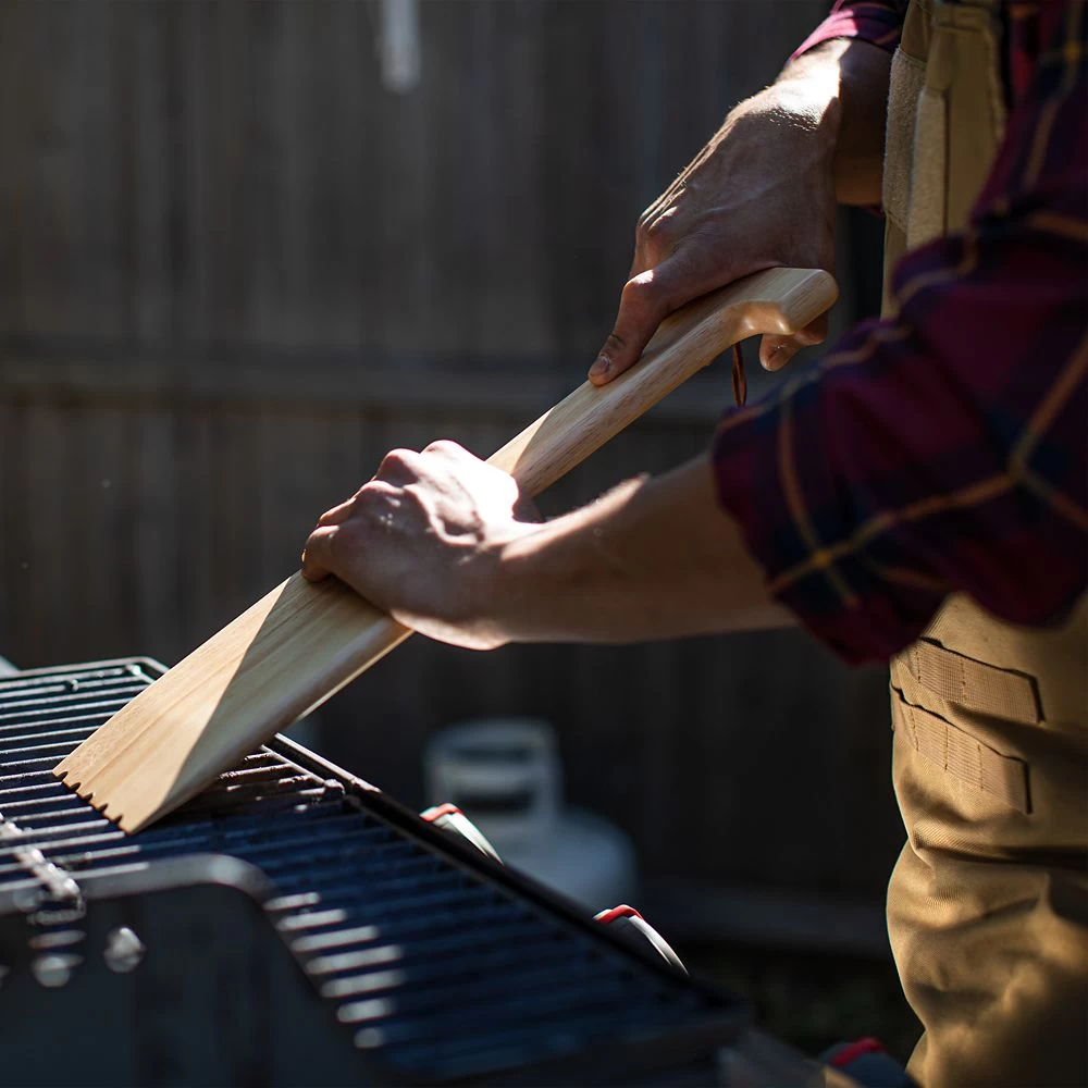 - Flat grill scraper with rope hanging loop