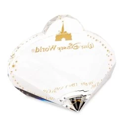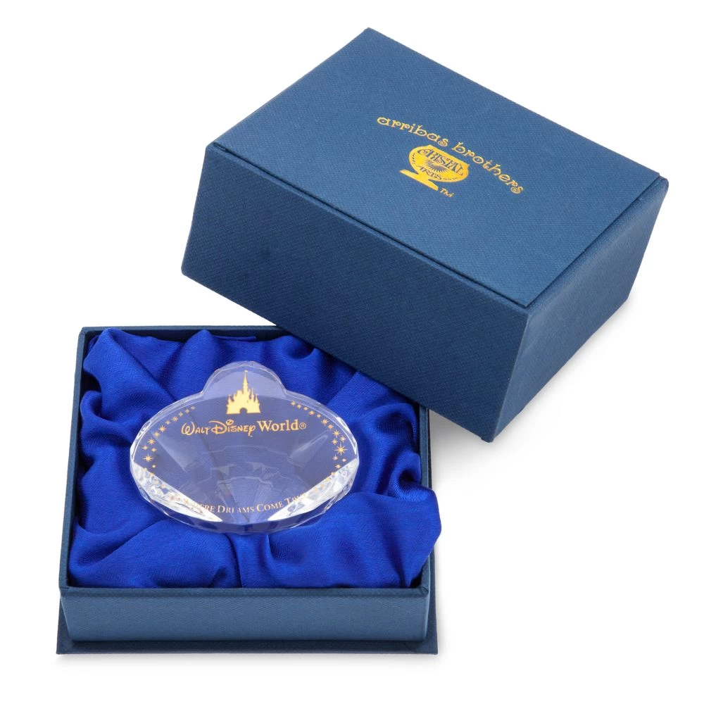 Walt Disney World Cast Members work where dreams come true, so it’s only fitting that this shimmering, faceted clear crystal paperweight by Arribas evokes their iconic nametags. Personalize it to make your own imaginings materialize.